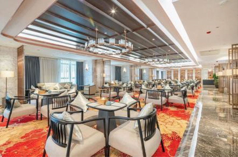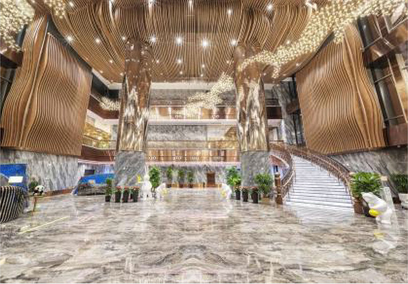 雅悦蓝天酒店始于2021年,按照豪华五星级酒店标准建造,位于成都市成华区白龙江路6号。雅悦蓝天大酒店英文名取自于ELEGANT AZURE“优雅的蔚蓝” , 表述了品牌年轻、雅致与自由自在。这也成为酒店趣味、快乐的重要内容。同时对品质的诉求将酒店的空间呈现“幻化”出更加优雅的气质。