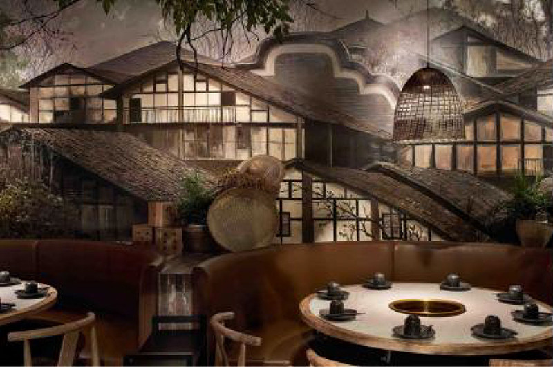 设计打破原本单调的空间框架,融合了传统建筑的屋檐、聚集的村落、乡间的小道等元素,将传统的建筑美学气质以一种游离的方式,通过当代新的设计表达,于虚实之间继续传承,打造兼具文化历史、艺术感官与互动交流的多元空间,从“食”出发,带来一场沉浸式的诗意美食之旅。