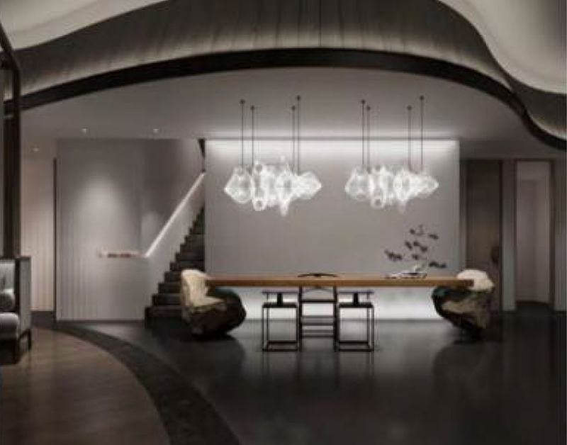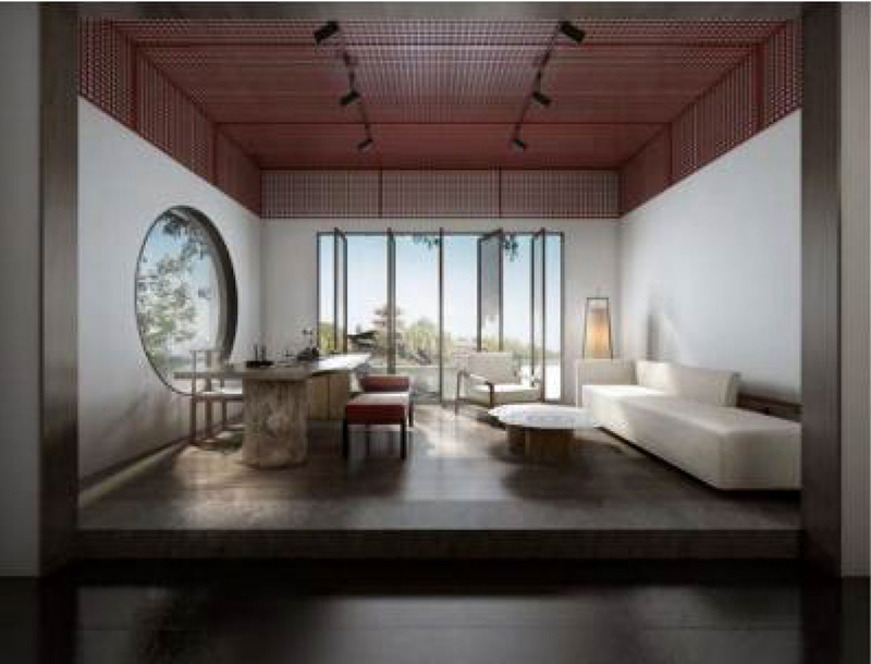 槐轩门位于成都琉璃厂项目面积1200㎡ 。山水于都市总像珍宝一样,但空间的构建加之我们与生俱来的“格物”精神,便有了方寸天地的可能性。于是,设计师为空间大面积铺陈绾、相思灰、鸦青等传统中国色,一幅素色工笔便从纸上漫向空间,素灰色艺术涂料和深色金属为整个空间带来稳定感。